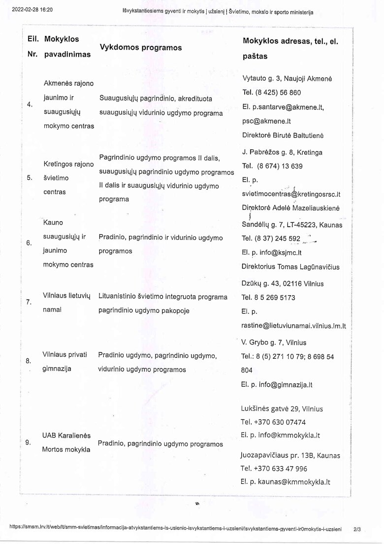 Iš užsienio atvykstančių ir/ar grįžtančių mokinių ugdymas