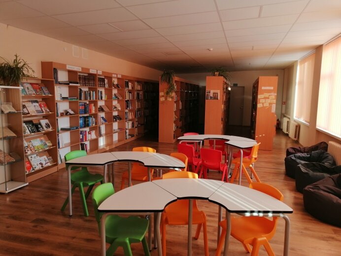Biblioteka – tai bendrystės erdvė, kurioje galima pasiskolinti įvairius leidinius: knygas, žurnalus („Laimiukas", „Lututė", „Gimtoji kalba" ir „Rubinaitis") bei savaitraštį „Žaliasis pasaulis".